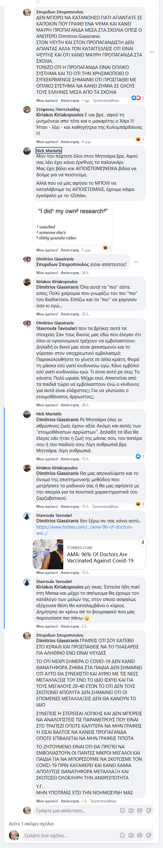 "FACEBOOK" - ΣΠΥΡΙΔΩΝ ΣΠΥΡΟΠΟΥΛΟΣ - ΣΧΟΛΙΟ: "...ΤΟ ΟΤΙ ΜΕΧΡΙ ΣΗΜΕΡΑ Ο COVID-19 ΔΕΝ ΚΑΝΕΙ ΘΑΝΑΤΗΦΟΡΑ ΖΗΜΙΑ ΣΤΑ ΠΑΙΔΙΑ ΔΕΝ ΣΗΜΑΙΝΕΙ ΟΤΙ ΑΥΤΟ ΘΑ ΣΥΝΕΧΙΣΤΕΙ ΚΑΙ ΑΥΡΙΟ ΜΕ ΤΙΣ ΝΕΕΣ ΜΕΤΑΛΛΑΞΕΙΣ..."